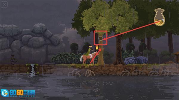 1、观察场景中【树-标记点】与【陶罐】的关联,通过操作角色移动至对应区域,触发物品交互。