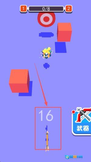 2、武器类型丰富多样:射击类武器包含针、小刀等多种不同物品,风格特点差异明显,打破了以往单一的射箭体验,带来满满的新鲜感。