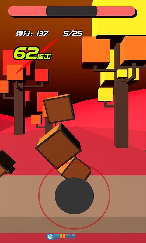 2、状态玩法:你得在障碍不断增多并将你彻底困住之前把它们都击碎,击碎的障碍数量越多,你获取的分数就越高,距离胜利也就越近。