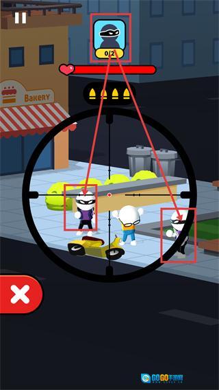3、场景里无辜者与暴徒混杂在一起,需要精准辨别目标身份以防止误击,这考验着玩家的观察与判断能力,也为简单的射击玩法增加了策略层面的区分度。