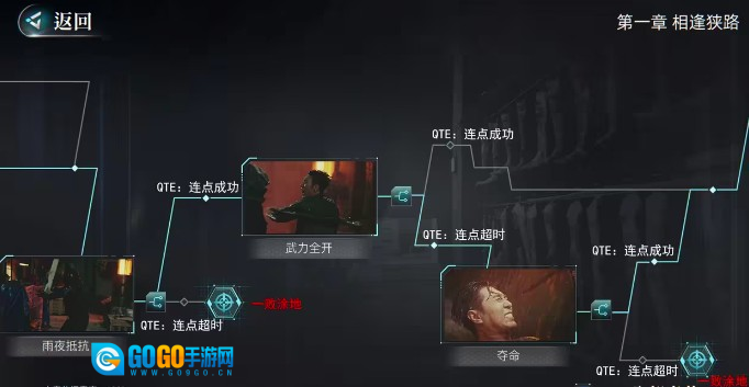 接下来玩家便能进入打斗模式,完成雨夜抵抗这场打斗后,要是QTE显示超时,就能解锁“一败涂地”这个成就。