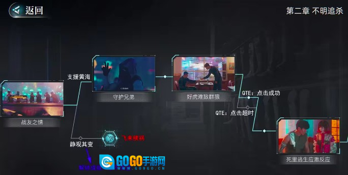 随着调查的逐步深入,玩家会面临两个抉择:一是支援黄海,二是静观其变。若选择支援黄海,便能解锁“守护兄弟”的故事剧情;若选择静观其变,则会解锁“事不关己”的成就,但之后会遭遇银鞋子,导致游戏失败。不过这里要提醒大家,后期触发“好虎难敌群狼”剧情时,在回忆环节建议点击“完美世界”,这对后续剧情的推进更有帮助。