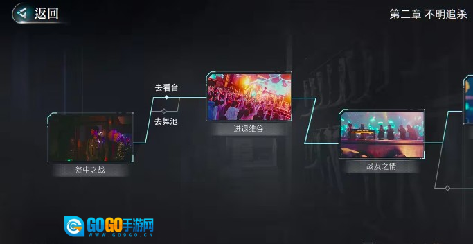 接下来要和大家分享的是第二张关于不明追杀的攻略内容。当玩家前往俱乐部后,会触发俱乐部遇险的剧情。需要注意的是,选择去看台或者舞池这两个选项,解锁的模式其实是相同的,因此玩家可以依据自身所处的具体位置,来挑选合适的地方进行查看。