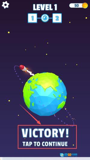 3、接着,当屏幕上弹出“VICTORY!”的提示后,直接点击“TAP TO CONTINUE”按钮,即可领取本关的胜利奖励。