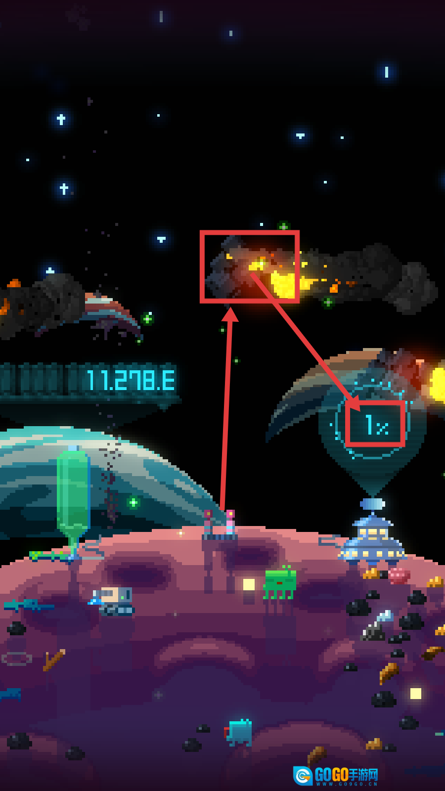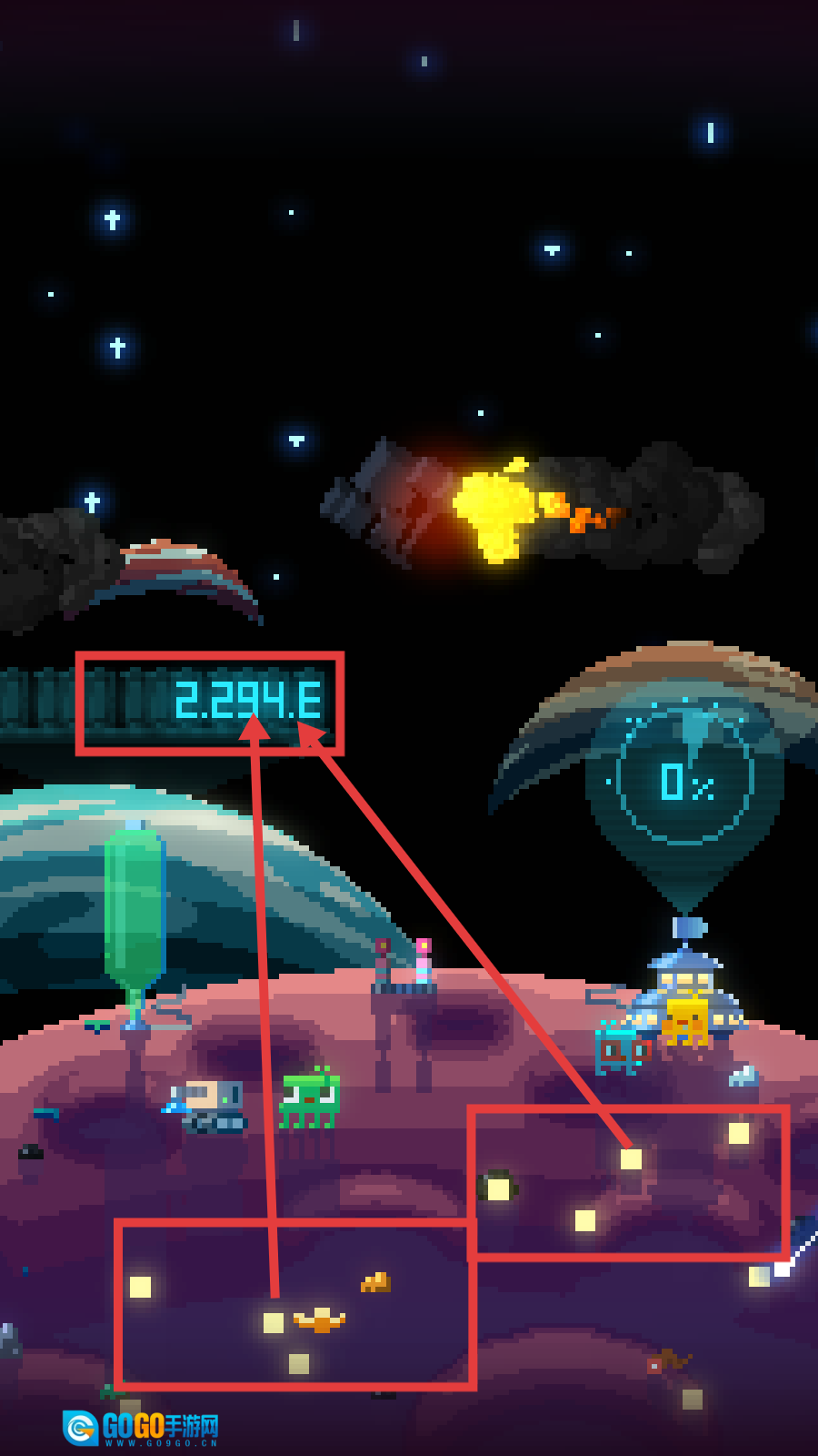 2、在星球上收集金币与E值资源(例如积累2.294.E、11.278.E这类数值),这些资源是实现游戏升级与推进游戏进程的核心要素。