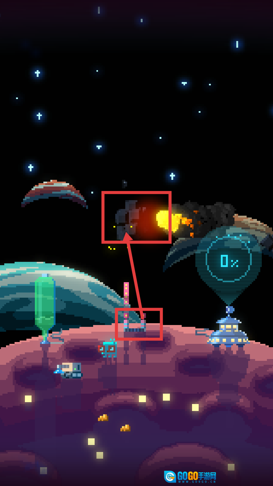 4、像素场景中藏着不少细节巧思,彗星分解时的粒子效果、火箭发射的光影轨迹、星球复苏时的植被蔓延,让简约的画风展现出丰富的视觉层次。