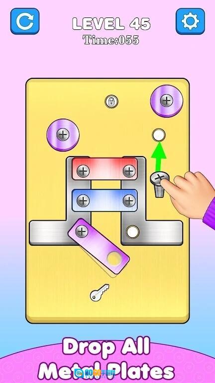 1、简单易懂的玩法:游戏操作十分简便,只需用手指滑动螺丝与螺母,把它们组装到一起就行。游戏画面也相当简洁,能让人一眼就清楚该如何游玩。