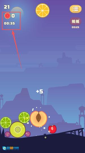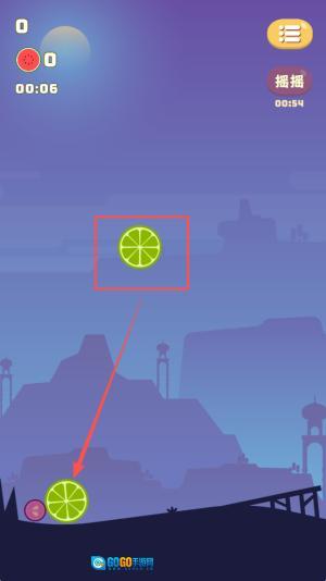 2、晃动手机合成玩法:每隔一会儿晃动手机,促使场景里的小水果相互碰撞融合,慢慢合成尺寸更大的水果,朝着大西瓜的目标推进。