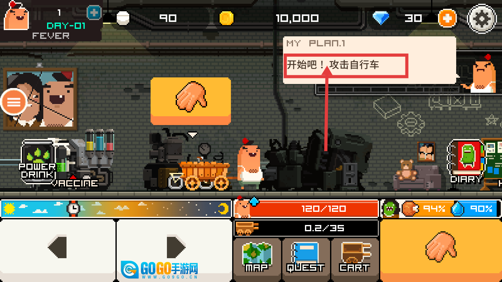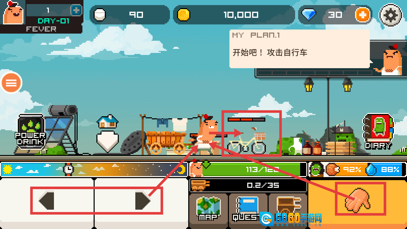 1、按照【MYPLAN.1-开始吧!攻击自行车】的提示,启动游戏任务,做好攻击目标的准备。