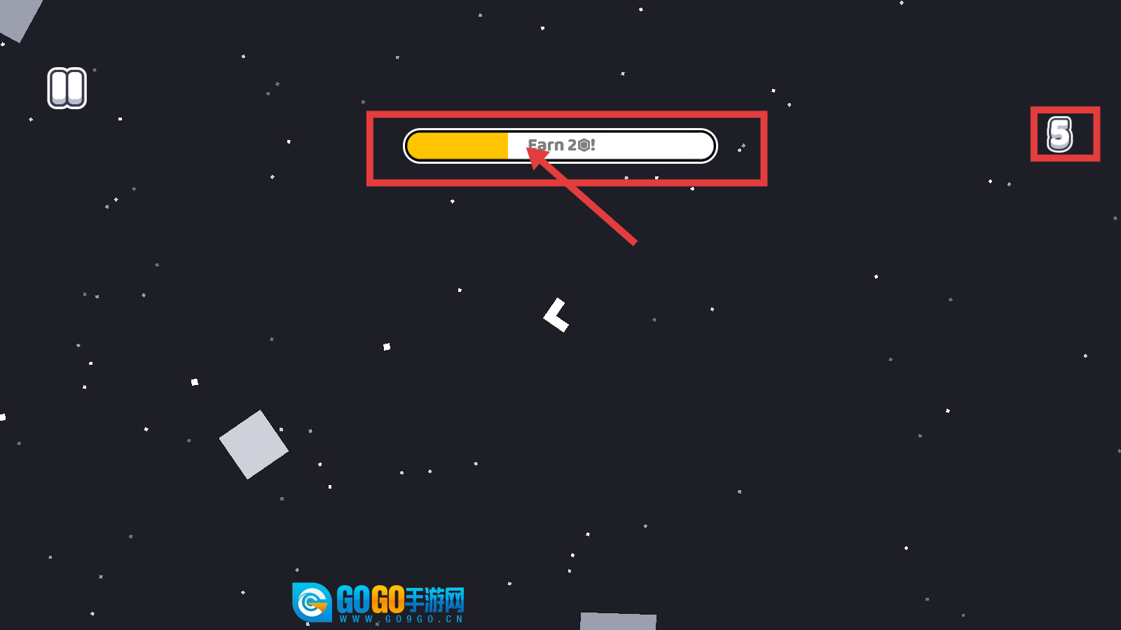3、留意【Earn-20!】进度条,通过持续攻击小行星来积累分数,保证进度条能稳步前进,从而达成目标。
