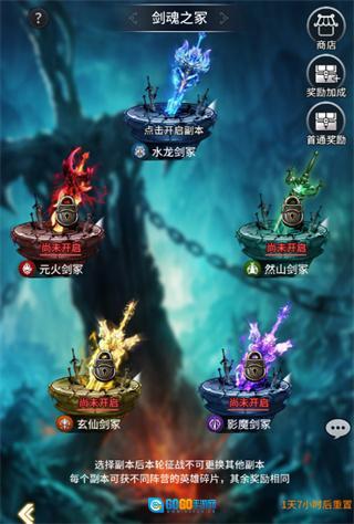 参与剑魂之冢玩法能够获取剑魂点数与金币。玩家进入玩法后需选择副本,一旦选定副本,本轮征战期间便无法更换为其他副本。不同副本可产出不同阵营的英雄碎片,除此之外的奖励则是一致的。