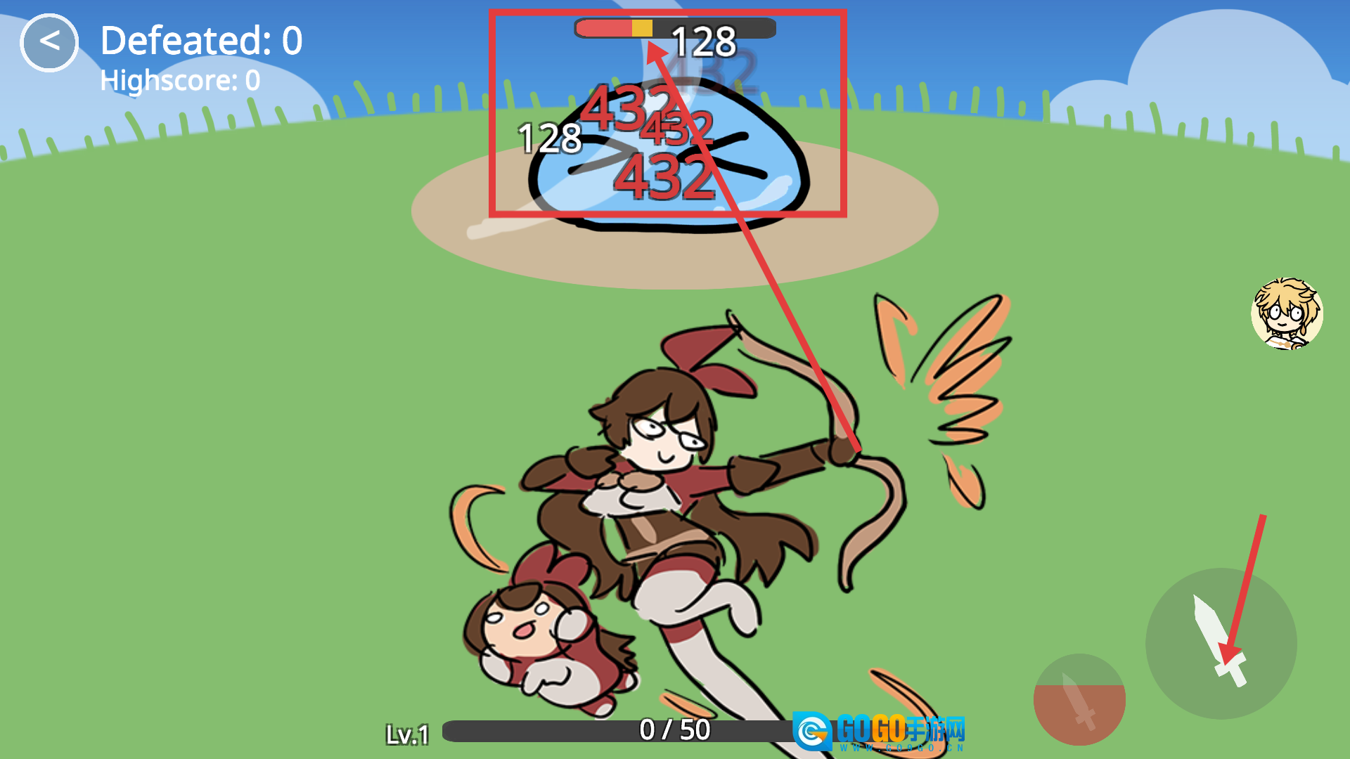 3、攻击史莱姆时,要留意伤害数值,持续点击攻击按钮,这样能快速消耗它的血量,从而提升战斗效率。