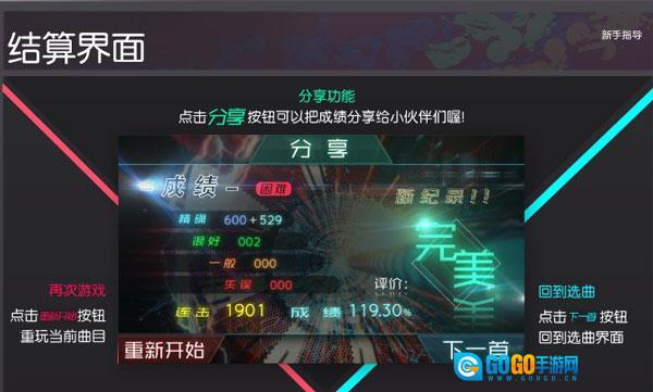 在每一首歌曲结束后,会为你实时呈现各方位信息,并结算相应的分数。