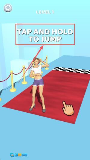 2、接着,当屏幕出现,用手指按住屏幕任意位置蓄力,松手即可让角色跳跃起步。