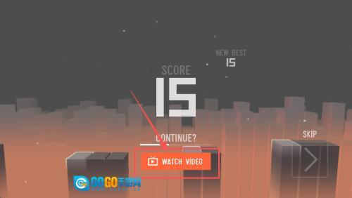 4、最后,可点击“WATCH VIDEO”观看短片免费续命,也可按“SKIP”直接结束本局,立即重开继续冲击更高分。