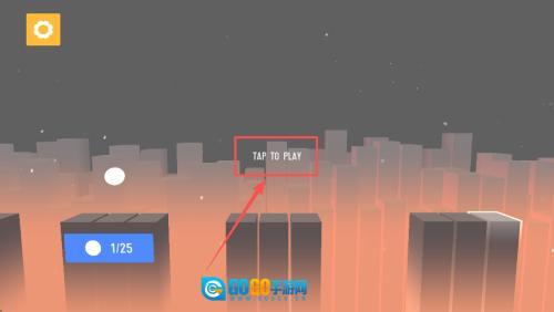 1、首先,在启动界面看到“TAP TO PLAY 1/25”时,轻点屏幕即可开始第 1 关,目标是连续通过 25 块平台。