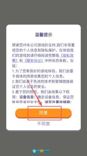 首先,请仔细阅读并同意个人信息保护指引,随后点击“同意”按钮,即可进入游戏。