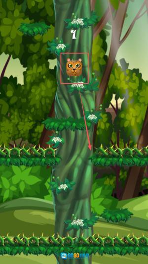 2、接下来,按住屏幕使猩猩顺着树干往上攀爬,注意避开障碍。