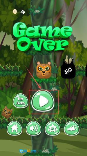 4、最后,如果弹出失败提示窗口,点击“50 Ads”按钮观看广告就能复活并继续攀登。