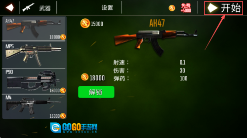 2、解锁武器的方法:进入武器选择界面后,找到并点击“解锁”按钮,消耗金币即可完成新武器的购买与解锁操作。
