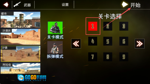 3、关卡选择方法:进入关卡选择界面后,点击对应数字按钮选定关卡,再点击“开始”按钮即可进入游戏。