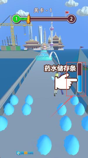 3、看见「药水储存存条」蓄满,立刻轻点释放加速,一口气冲过障碍。