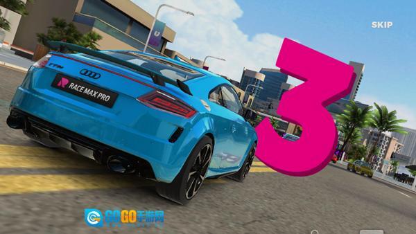 游戏开始前会播放一段展示赛车全貌的动画,点击右上角即可跳过。