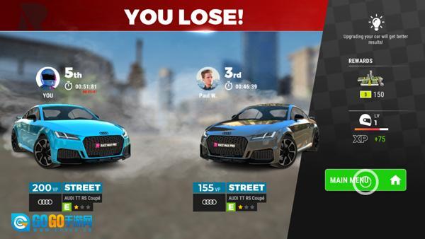 6、最终,率先冲过终点线的赛车赢得比赛胜利,同时能获得相应的经验值与钞票奖励。