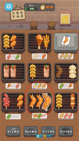 3、要培养全面观察的习惯,不要只盯着眼前的几串烤肉。结合关卡的特性和烤肉串的布局情况,及时调整消除的方式,这样就能让游戏体验更上一层楼。