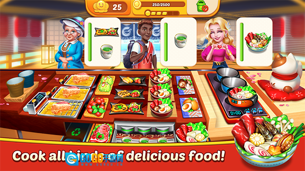 3、丰富的菜品选择;游戏内设有大量不同类型的菜品,玩家能在游戏过程中掌握各类菜肴的制作技巧,从而积累更丰富的烹饪经验。