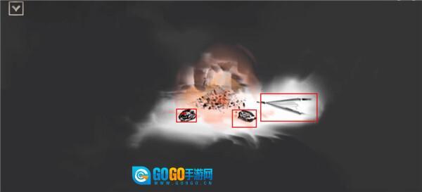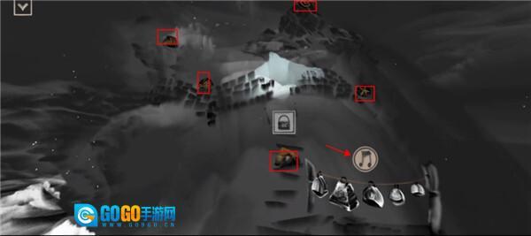 4、按照图示点击化石所在的位置,让化石显现出来,接着点击旁边的音乐按钮,通过奏响音乐使道路显现出来。