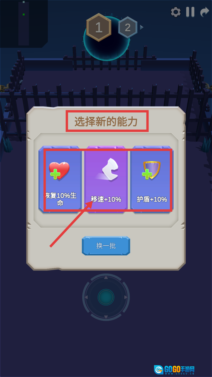4、通关第1关后进入【2】关,面对更多怪物,利用已选能力灵活走位逐个击破。