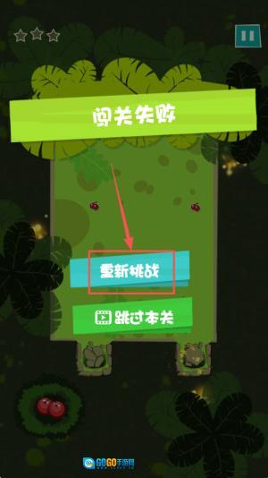 4、最后,若仅获得“★☆★”且显示“闯关失败”,可以点击“重新挑战”再次尝试,或者选择“跳过本关”进入下一关。