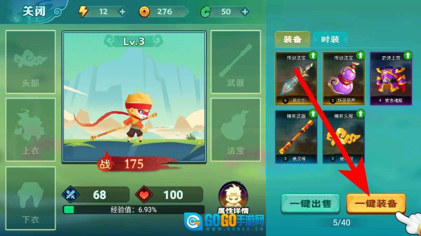 3、在背包中点击一键装备,穿戴新获得的装备提升角色战力。