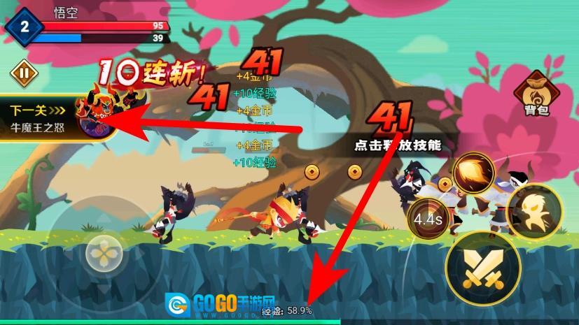 1、点击任务,查看经验值达成连斩效果,可获得更多经验与金币。