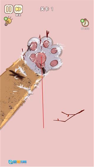 1、进入关卡1界面后,找到受伤的爪子并查看,为接下来的清理处理做准备,以此推动解压流程的进行。