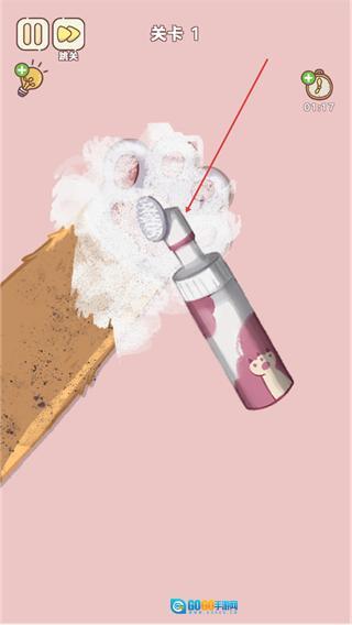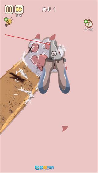 4、借助清洁工具,对爪子区域进行清理,以此完成关卡1的解压步骤。