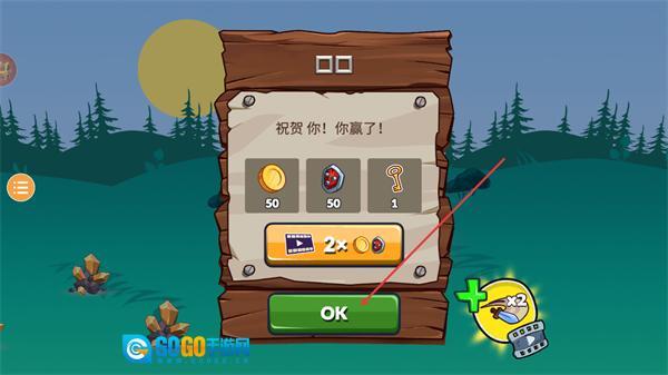 4、关卡胜利后出现祝贺你,你赢了的提示,点击OK按钮领取对应的金币等奖励。