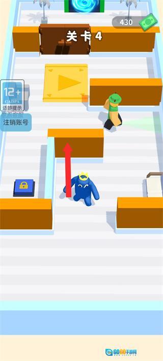 进入关卡4界面后,需操控蓝色角色顺着箭头指示的方向移动,这是开启该关卡的关键步骤,务必精准按照箭头指引朝目标区域行进。