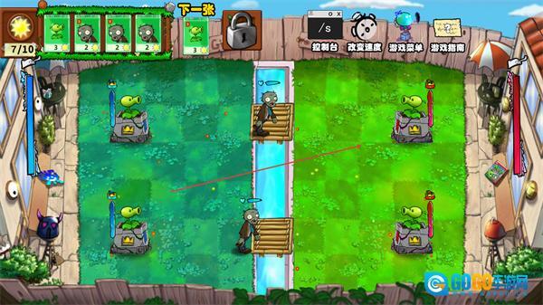 2、在场地布置植物,利用植物攻击来袭的僵尸,阻挡其前进,推进对战进程。