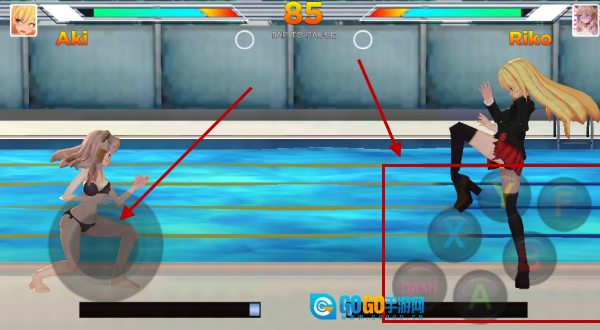 3、接下来我们就能开启格斗环节了,左边的摇杆用于操控角色的移动,右边则是各类动作按键。