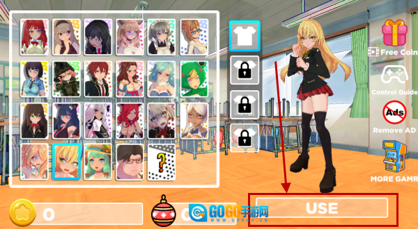 2、随后进入角色选择界面,挑选你心仪的角色,再点击屏幕右下角的USE按钮来使用该角色。