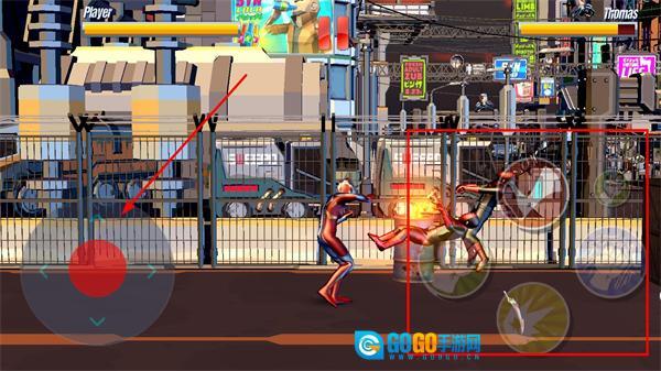 2、借助左侧的方向按钮操控角色在场景里移动,调整位置以靠近对手,为之后释放攻击技能或是躲避伤害做好准备。
