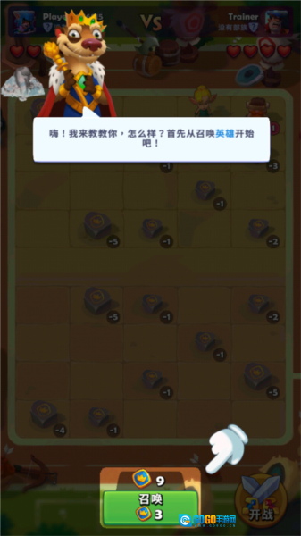 2、进入战场后,玩家需通过点击来生成单位,并利用初级单位进行合并升级,直至无法再召唤或合并时,便可点击开启战斗