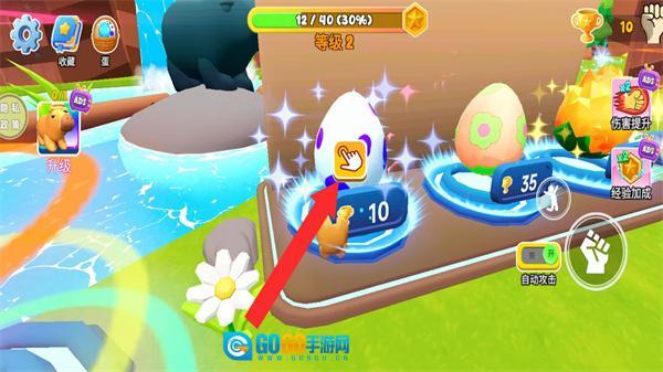3、等级提升后,点击场景中的超级蛋,打开蛋的获取界面,准备解锁新角色。