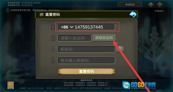 3、在重置密码界面,输入绑定的手机号,点击获取验证码,获取短信验证信息。