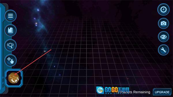 2、在网格界面点击左侧的天体,将其放置到网格区域内,为后续的天体碰撞合成相关操作做好准备。