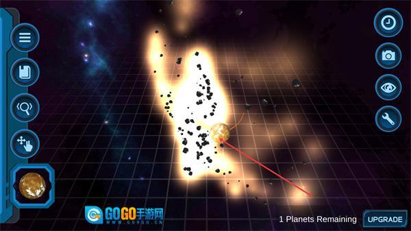 4、操控天体进行碰撞,碰撞后会出现碎裂效果且剩余天体数量减少,完成该操作可推进游戏进度解锁更多内容。