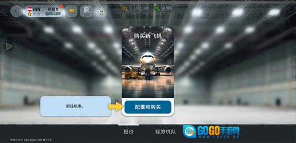 4、然后购买你的新飞机并放置机库中