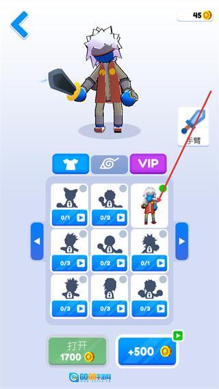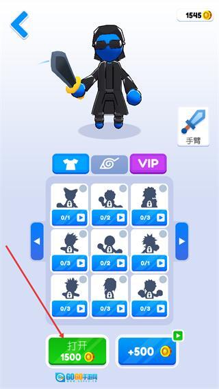 2、在皮肤装扮界面,点击底部标注打开1500的按钮,消耗对应数量金币,即可解锁新的角色皮肤装扮。